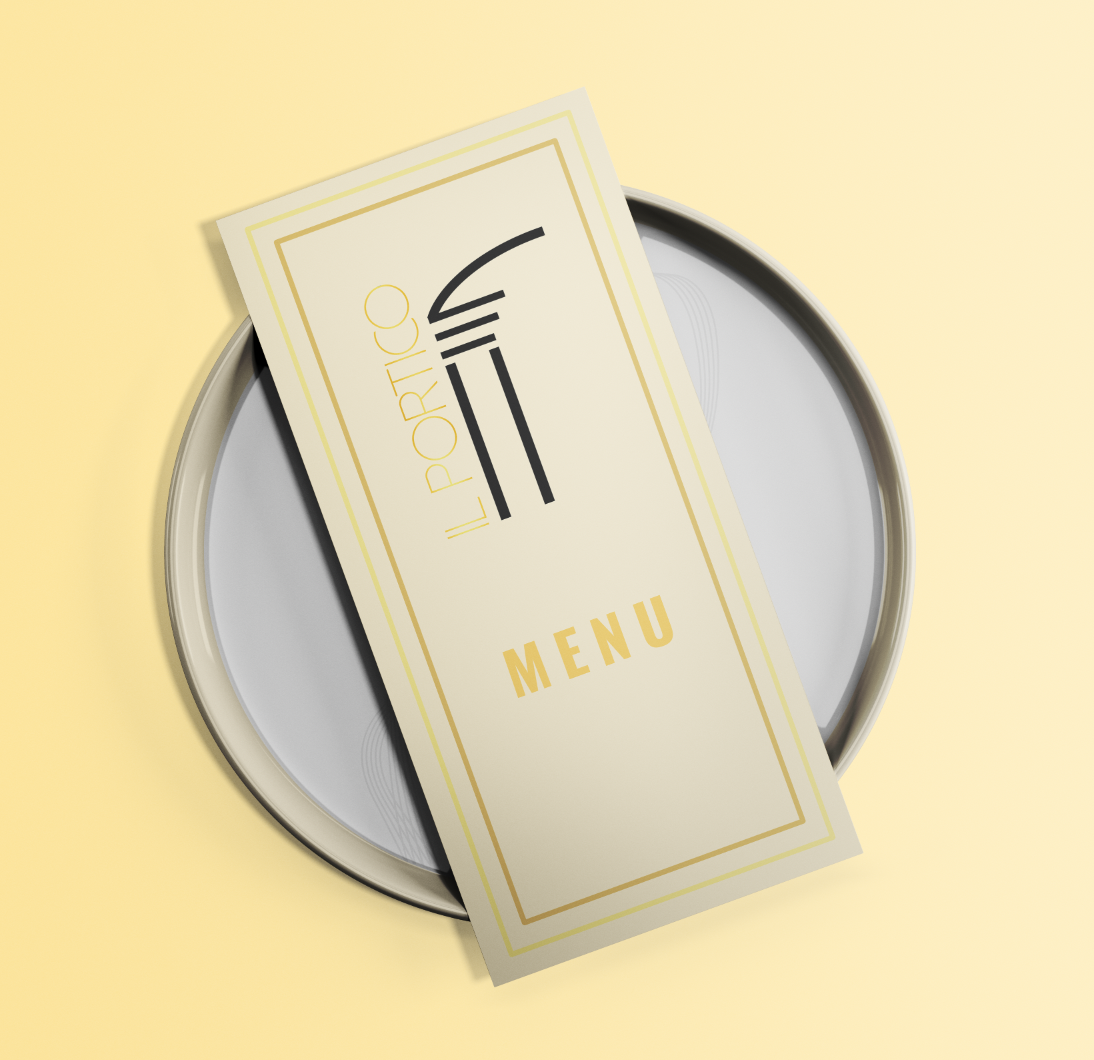 Realizzazione del logo, insegna, biglietti da visita e menu per il ristorale “Il Portico” di Cassano d’Adda