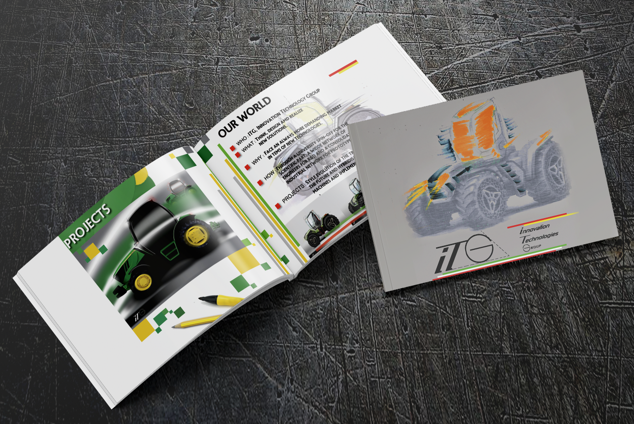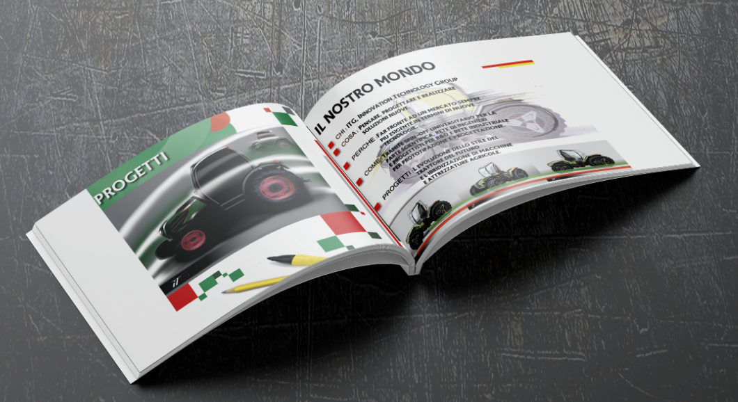 Brochure per azienda specializzata in innovazioni tecnologiche per macchine agricole in duplice lingua Italiano e Inglese.
